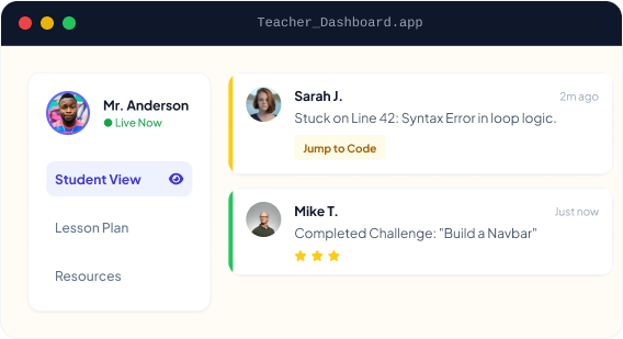 ด้วยระบบเรียนรู้แบบเรียลไทม์ที่ครูสามารถเห็นโค้ด